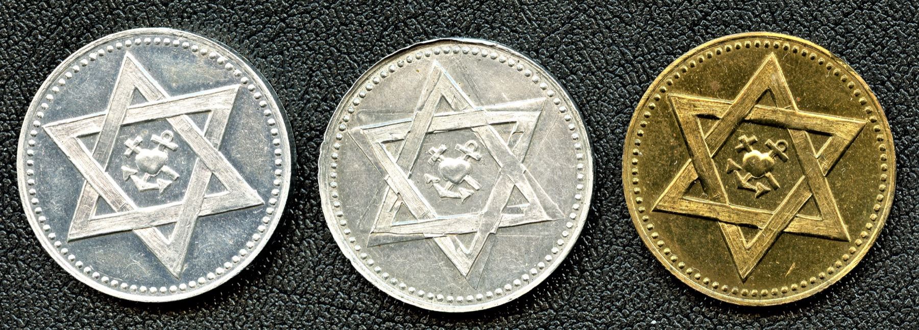 Br 789, C.M.B.A., Aluminum, Unc; Same as previous, EF; Br 790, C.M.B.A., Brass, Unc. 3pcs.
