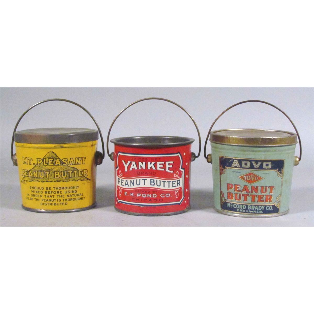 Lot of Three Peanut Butter Pails. Including Advo, Yankee Brand and Mt. Pleasant Peanut Butter. Excellent to very good condition. Start Price $40