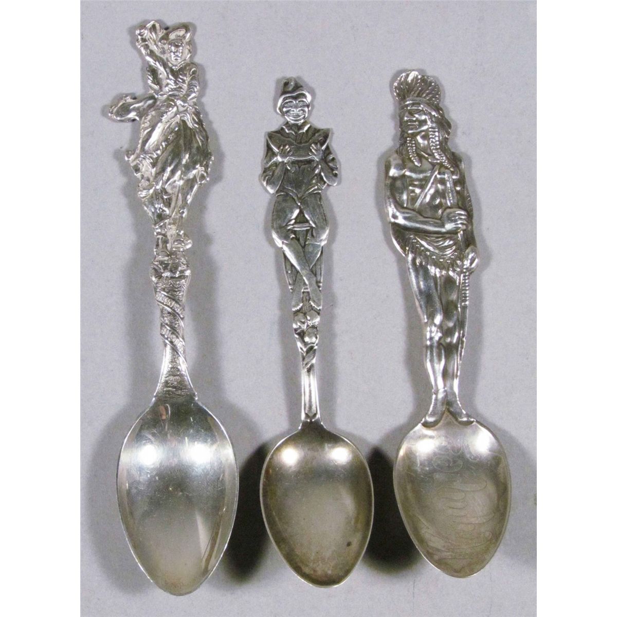 Lot of Three Sterling Silver Souvenir Spoons. Embossed Bronco Buster, Native American-Winnipeg and Black Americana image boy holding watermelon. All in excellent condition. Longest measures 5 3/4 inches long. Start Price $30