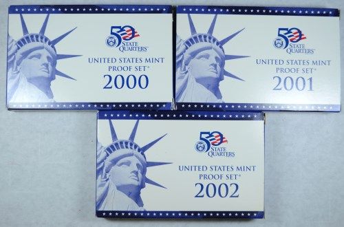 Lot of Three United States Mint Proof Set, 2000.2001,2002, In original box