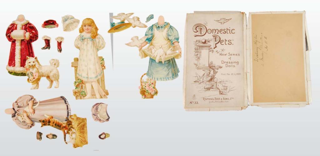 Description ND. Boxed set #33 includes an 8.25-inch doll, three outfits and four hats. The little girl and her pets are in pristine condition. The set is incomplete and the box is flattened.