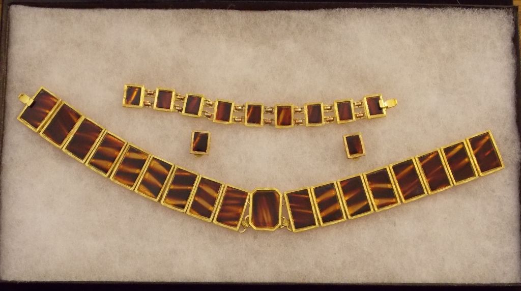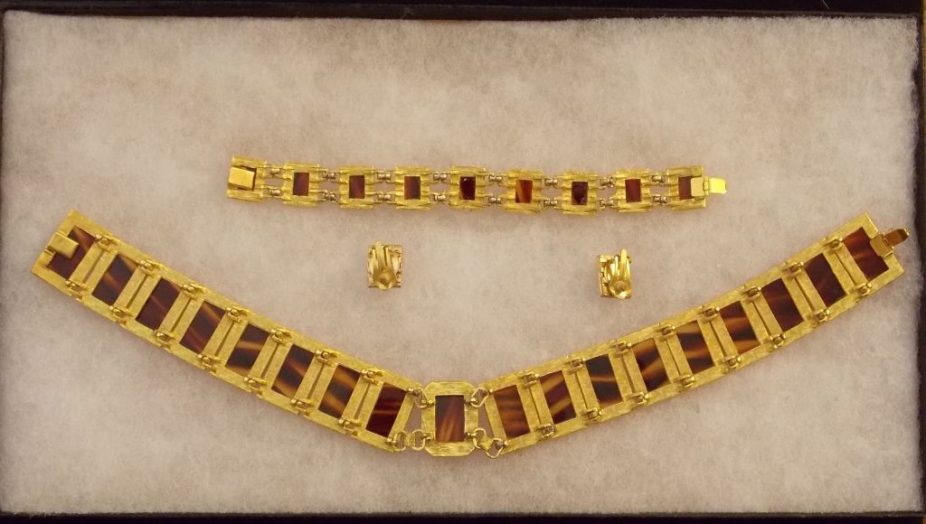 Vintage Costume Jewelry Lot of Turtle Shell Necklace, Ear Rings, and Bracelet from the '60s. Comes as shown in Photos. Case for display only and is not included.