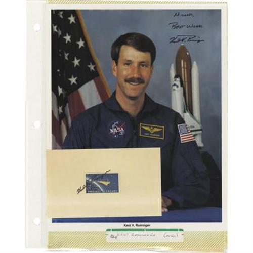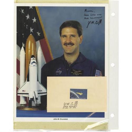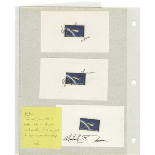 <B>Lot of Twelve Astronaut Signatures,</B></I> including: Mike Massimino, Steve MacLean, Kent Rominger, John Grunsfeld, Duane Carey, Gregory Johnson, Michael Fossum, Christopher Ferguson, and Bonnie Dunbar. Each signature is on or near a space related stamp mounted on a 5" x 3" card. Rominger, Massimino, and Grunsfeld also signed an official NASA photograph. MacLean just signed a photo. All cards and photos are in acetate album pages. All are very fine. <B></B></I><BR><BR><b>Shipping:</b> Flat Material, Small (<a target="_blank" href="http://www.heritageauctions.com/common/shipping.php">view shipping information</a>)