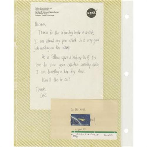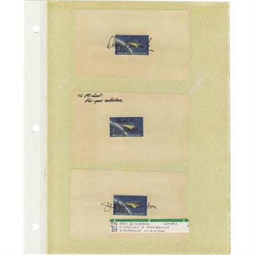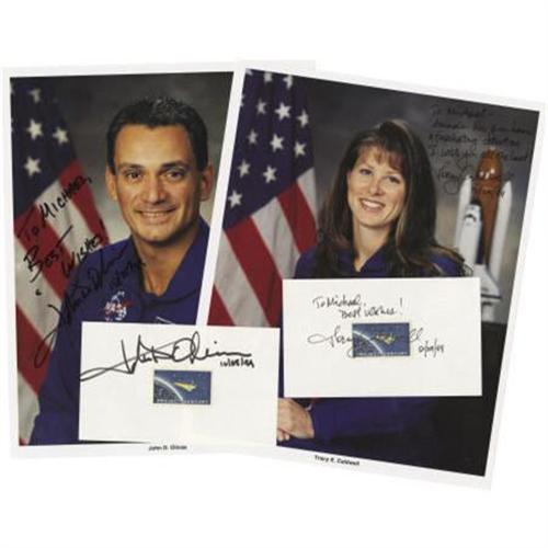 <B>Lot of Twelve Astronaut Signatures,</B></I> including: John Olivas, Tracy Caldwell, Leland Melvin, Catherine Coleman, Duane Carey, Dan Burbank, Charles Harbaugh, and Stephanie Wilson. Each signature is on or near a space related stamp mounted on a 5" x 3" card. Olivas, Caldwell, Melvin, and Coleman also signed official NASA photographs. All cards and photos are in acetate album pages. All are very fine. <B></B></I><BR><BR><b>Shipping:</b> Flat Material, Small (<a target="_blank" href="http://www.heritageauctions.com/common/shipping.php">view shipping information</a>)