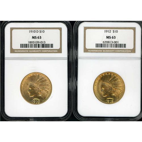 Includes: 1910-D NGC MS63, 1912 NGC MS63. Lot of 2 coins.