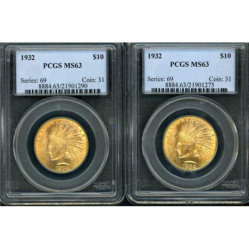 Lot includes: 2-1932 PCGS MS63. Lot of 2 coins.