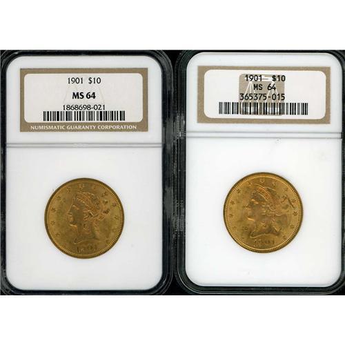 Includes: 1901 NGC MS64, 1901 NGC MS64. Lot of 2 coins.