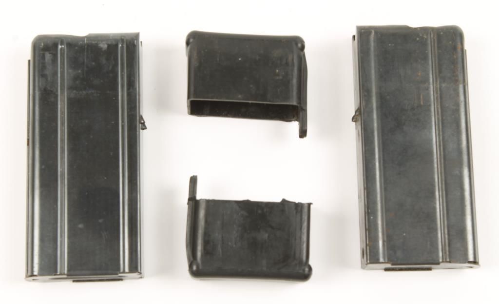 Metal construction. One is stamped "IA" and the other is stamped "B" in a circle. Both have dust covers.