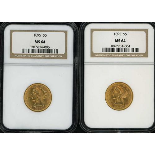 Lot includes: 1895 NGC MS64, 1895 NGC MS 64. Lot of 2 coins.
