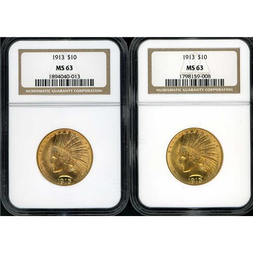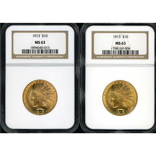 Includes: Two 1913 NGC MS63. Lot of 2 coins.