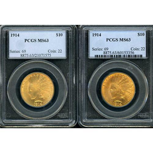 Includes: two 1914 PCGS MS63. Lot of 2 coins.