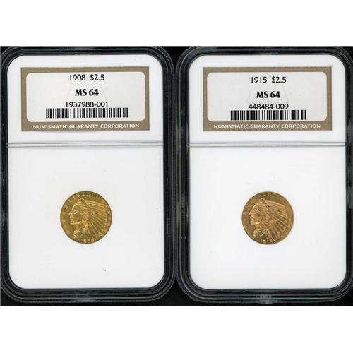 Includes: 1908 NGC MS64, 1915 NGC MS64. Lot of 2 coins.