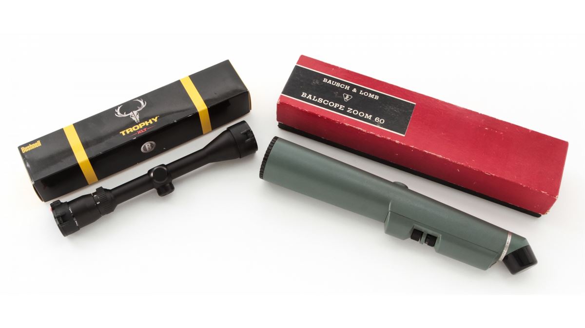 Lot of Two (2): (1) Bushnell Trophy XLT 3-9x40 riflescope, in original box with instructions. (2) Bausch & Lomb Balscope Zoom 60, in original box. Both in excellent condition. Est.: $150-$250/lot.