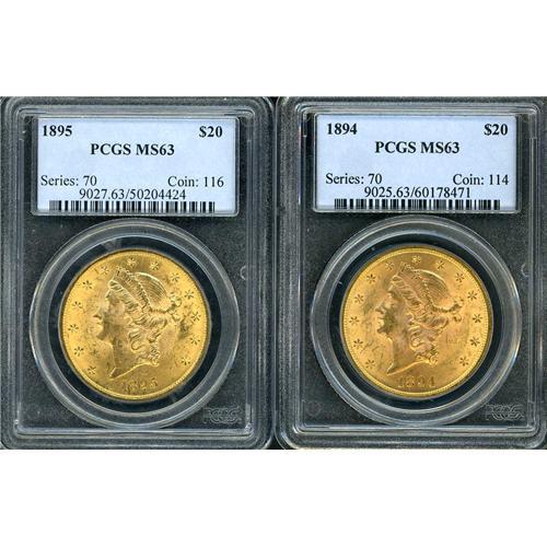 Includes: 1894 PCGS MS63, 1895 PCGS MS63. Lot of 2 coins.