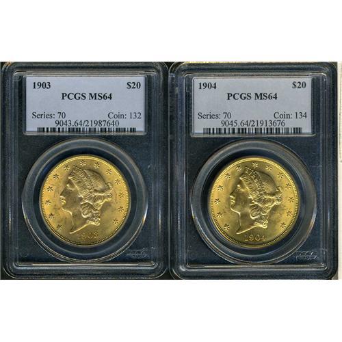 Includes: 1903 PCGS MS64, 1904 PCGS MS64. Lot of 2 coins.