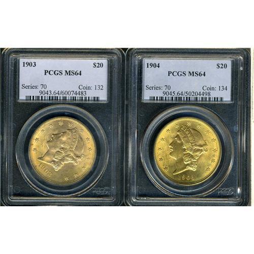 Includes: 1903 PCGS MS64, 1904 PCGS MS64. Lot of 2 coins.