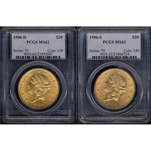 Lot includes: 1906-D PCGS MS62 and 1906-S PCGS MS62. Lot of 2 coins.