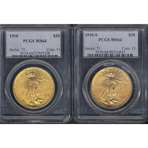 Includes: 1910 PCGS MS64, 1910-S PCGS MS64. Lot of 2 coins.