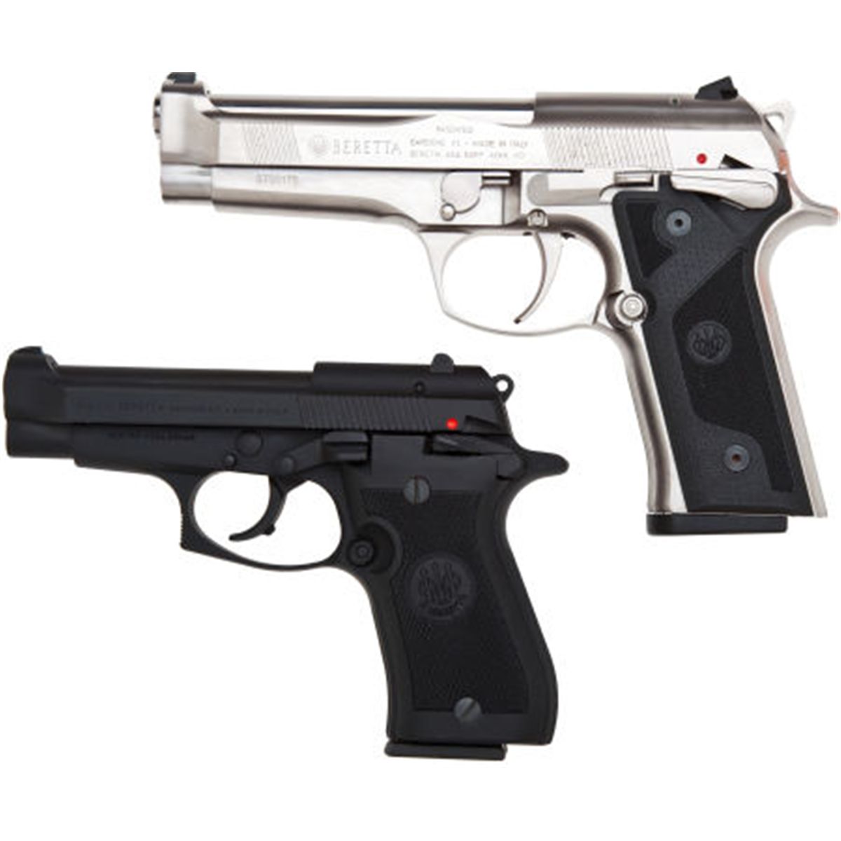 Lot of Two Beretta 92 Steel-I and 85 Semi-Automatic Pistols. (1) Serial no. ST00176, 9mm, 4.9" barrel, nickel alloy finish, plastic grips, ambidextrous safety (de-cocking lever), 3-dot fixed sights, with two-10 shot magazines, manual, cleaning brush and factory plastic case, in Beretta cardboard box. (2) Serial no. F00012Y, .380 ACP, 3.8" barrel, matte black Bruniton finish, plastic grips, alloy frame with steel slide, ambidextrous safety (de-cocking lever), low profile 3-dot sight, with two 8-shot magazines, manual, cleaning brush and factory plastic case, in Beretta cardboard box.Condition: As new in factory boxes. Bores are bright, actions are strong. NRA FIREARMS FOR FREEDOM PROGRAM