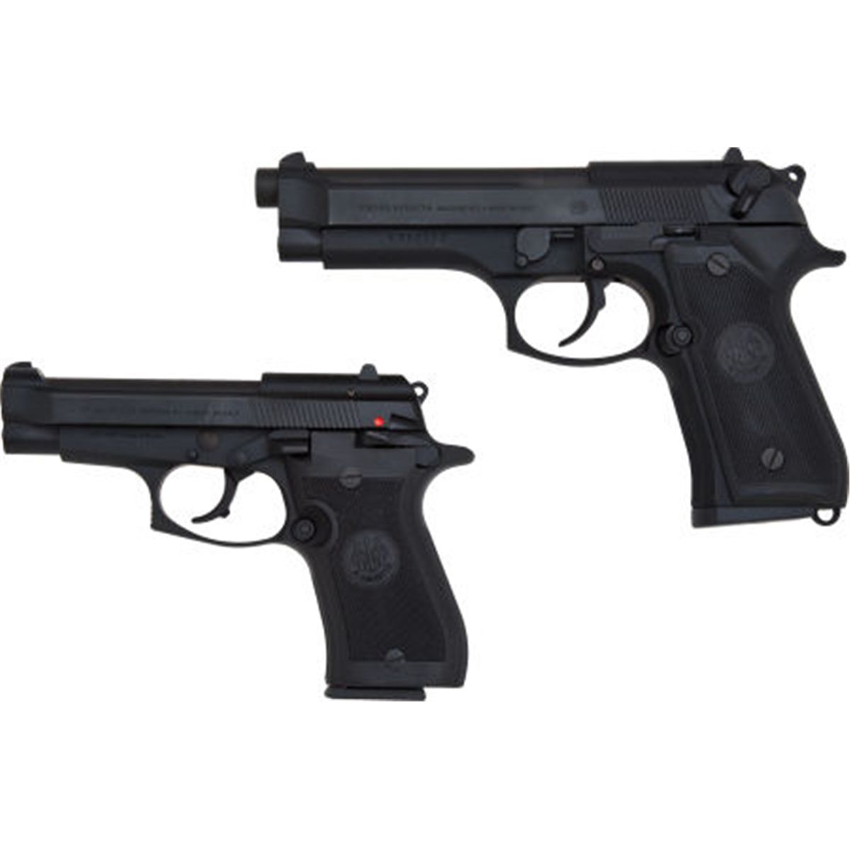 Lot of Two Beretta Semi-Automatic Pistols. Comprising: 1) Model 85F Serial no. F00018Y, .380 ACP, 3.8-inch barrel, with low profile 3-dot sight. Matte black bruniton finish, plastic grips, alloy frame with steel slide and ambidextrous safety Sold together with two 8-shot magazines, manual and cleaning brush. Contained in factory plastic case and Beretta cardboard box. 2) Model 92F. Serial no. K00017Z, 9mm, 4.9-inch barrel, with fixed sights. Matte black bruniton finish, plastic grips, alloy frame with steel slide, ambidextrous safety (decocking lever) and loaded chamber indicator, Sold together with two 15-shot magazines, manual and cleaning brush. Contained in factory plastic case and Beretta cardboard box. Condition: Both are as new in factory boxes. Bores are bright, actions are strong.NRA FIREARMS FOR FREEDOM PROGRAM
