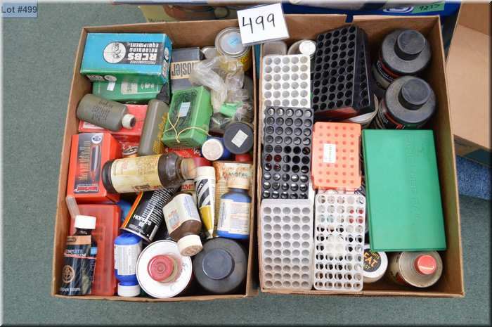 Lot of Two Boxes : Gun powder, various dies, bullets, etc