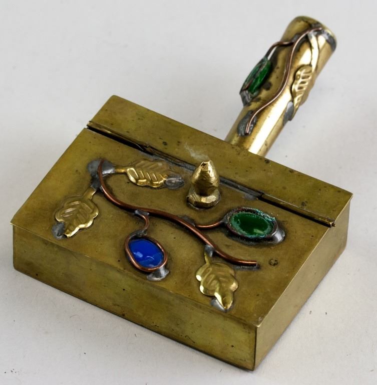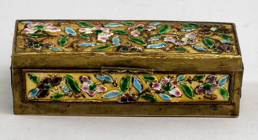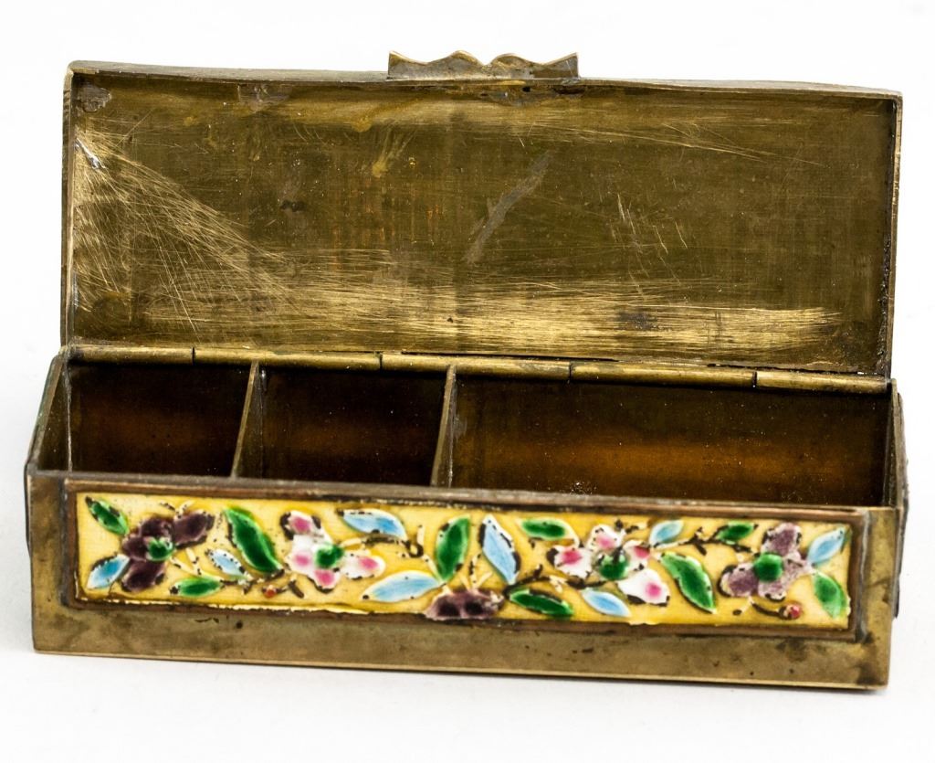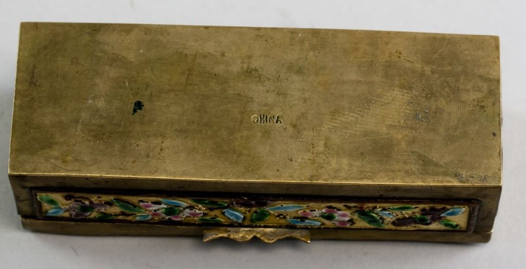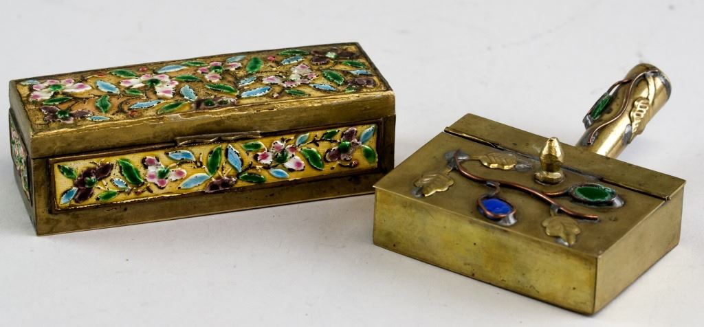 Lot of two (2) Chinese enameled ashtray and box. Stamped with "CHINA" on base. Decorated with colorful stones and metal work. 3 x 11 cm, 228 g (total).
