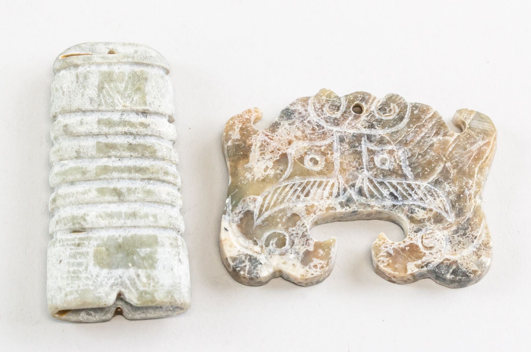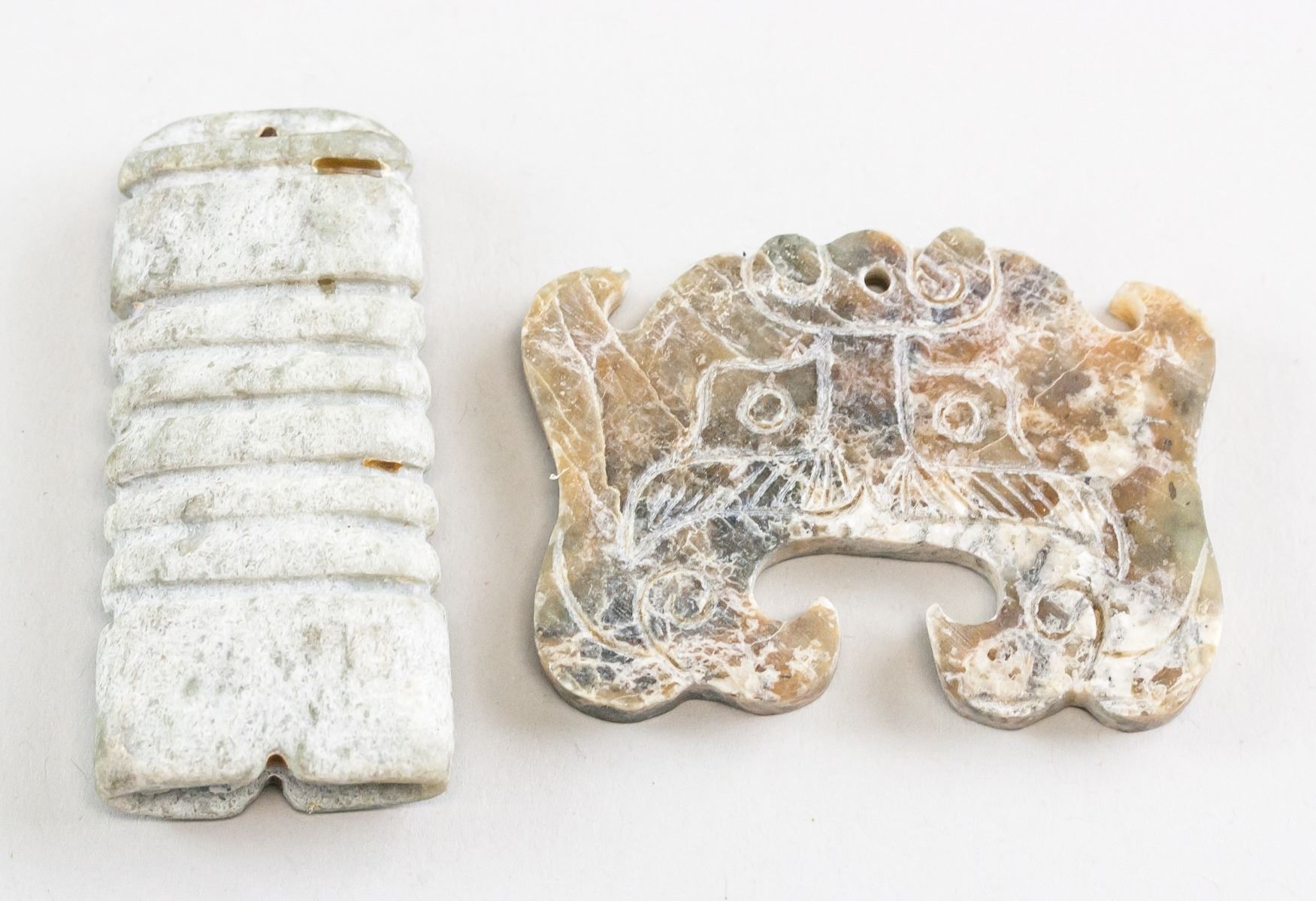 Lot of two (2) Chinese jade carved. One of brown tone, one of white tone. 6 x 5 cm, 64 grams (total).