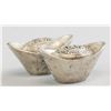 Lot of two (2) Chinese silvered ingots. Stamped with "Jia Qing" and "Yong Zheng" on top. Stamped with "Da Qing Ku Yin" on base. 4 x 6 cm, 304 grams total.