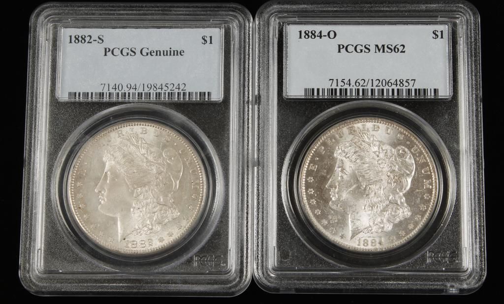 1882-S PCGS catalog price $40, 1884-O PCGS catalog price $45.