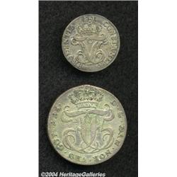 <B>Lot of Two Coins,</B></I> KM595 8 Skilling 1763 Fine; KM582 24 Skilling 1583 Fine. 2 coins <BR><BR><B>Important notice:</B> Heritage usually auctions material at the rate of 200-250 lots per hour. On some occasions eBay Live bid software or the Internet may not be able to keep up with the pace of the auction. We recommend placing a realistic absentee bid now as insurance to avoid disappointment. Occasionally the auctioneer may eliminate or reject an eBay Live bid, and the auctioneer may also reopen a lot after the close of the eBay live bidding (usually because we missed an audience bid), and may reject your bid even if it shows you as the winning bidder. By bidding via eBay Live, you agree that Heritage may award the lot to another bidder at its sole discretion under the circumstances described above or any other reasonable circumstances. Since eBay bids are not shown to us until we open the lot on the floor, we treat those bids just like floor bids. In most cases the floor responds before the eBay bid is presented to us, due to Internet lag time, so for consistency we have made it a policy that floor bids are always considered first over tie eBay live bids. Also please note that all Heritage lots purchased through eBay Live carry a 20% Buyer's Premium. Please make sure you read the Terms and Conditions before you bid.