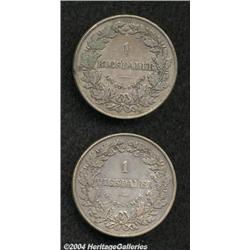<B>Lot of Two Coins,</B></I> KM760 One Rigsbankdaler 1855, both FF and VS, VF. <BR><BR><B>Important notice:</B> Heritage usually auctions material at the rate of 200-250 lots per hour. On some occasions eBay Live bid software or the Internet may not be able to keep up with the pace of the auction. We recommend placing a realistic absentee bid now as insurance to avoid disappointment. Occasionally the auctioneer may eliminate or reject an eBay Live bid, and the auctioneer may also reopen a lot after the close of the eBay live bidding (usually because we missed an audience bid), and may reject your bid even if it shows you as the winning bidder. By bidding via eBay Live, you agree that Heritage may award the lot to another bidder at its sole discretion under the circumstances described above or any other reasonable circumstances. Since eBay bids are not shown to us until we open the lot on the floor, we treat those bids just like floor bids. In most cases the floor responds before the eBay bid is presented to us, due to Internet lag time, so for consistency we have made it a policy that floor bids are always considered first over tie eBay live bids. Also please note that all Heritage lots purchased through eBay Live carry a 20% Buyer's Premium. Please make sure you read the Terms and Conditions before you bid.