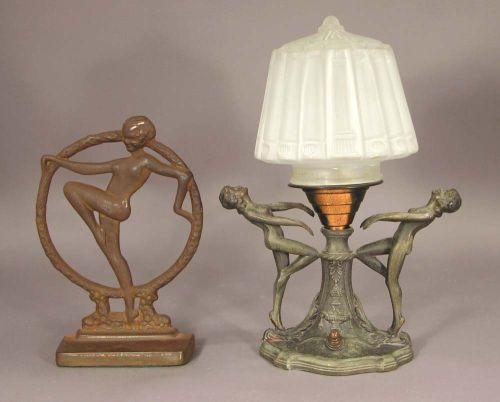 Lot of Two Deco Metal Lamps without wiring and TV Light/Door stop.