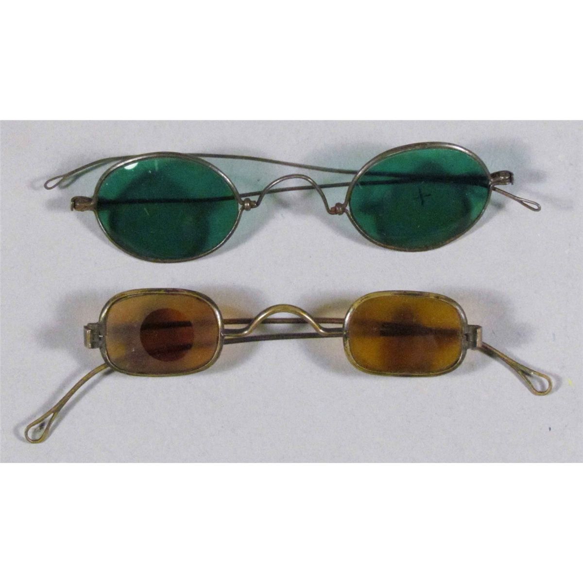 Lot of Two Early Wire/Steel Rimmed Spectacles. Tinted lenses. Overall good condition. Start Price $30