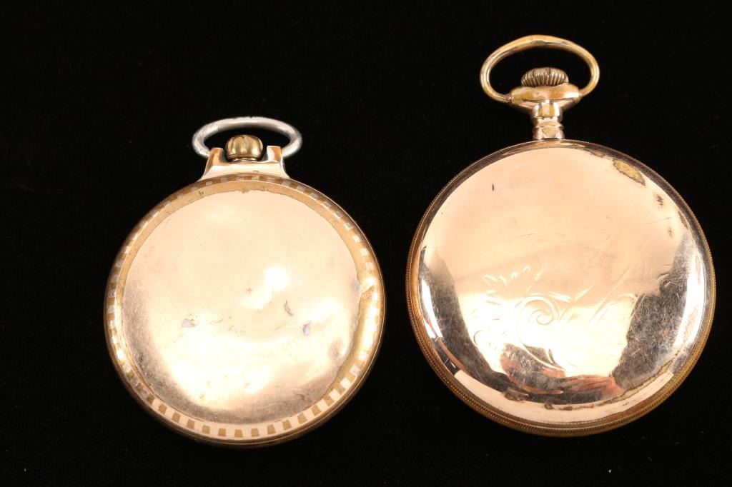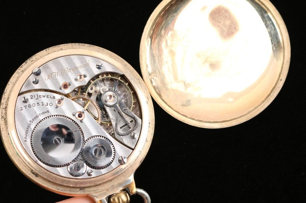 1) Elgin grade 336, model 5, size 18, 17 jewel, ruby & sapphire. Number 16620912, manufactured 1912. Philadelphia Watch Co. gold filled 20 year case. In good working order 2) Elgin grade 478, model 15, size 16, 21 jewel. "B.W. Raymond" marked movement. Number 27805130, manufactured 1925. Railroad grade. In good working order. There is a minor dent in the back of the case.