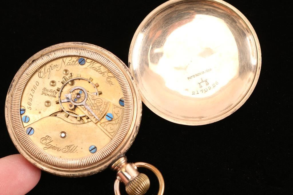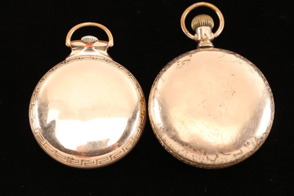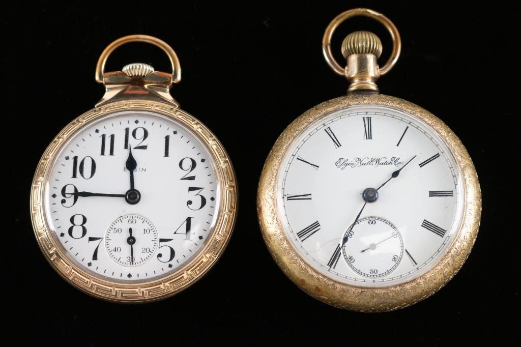 1) Elgin grade 73, model 5, size 18, 7 jewel. Roman Numerals. Number 5651360, manufactured 1895. Gold filled case marked with scales & "Pat'd Nov, 19. 1889". In good working order, case has some handling wear. 2) Elgin grade 478, model 15, size 16, 21 Jewel. "B.W. Raymond" marked movement. Number 26725805, manufactured 1924. Railroad grade. 10K gold filled Nawco case marked "Security Railroad Model".