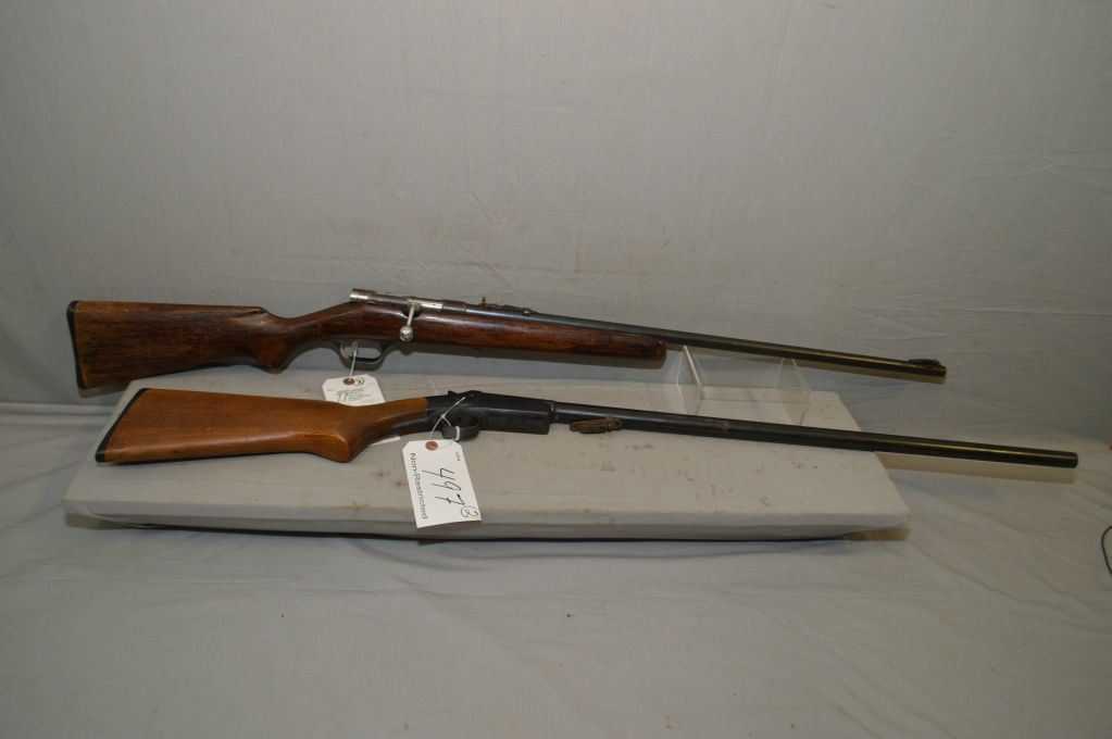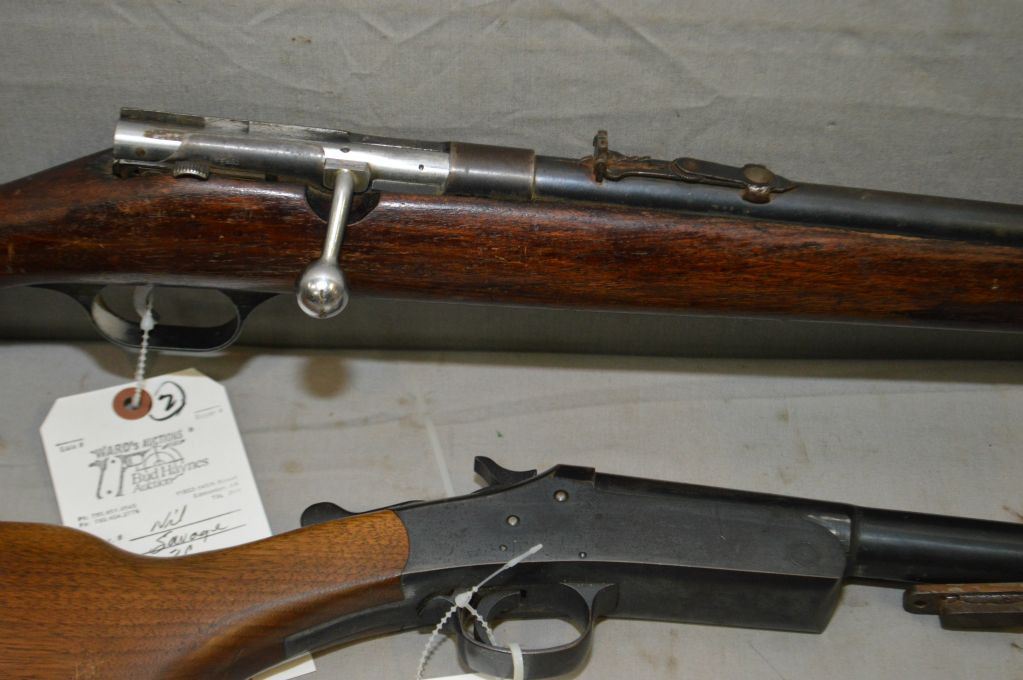Lot of Two Firearms : Harrington & Richardson Model Topper M48 .12 Ga Single Shot Shotgun w/ 29 1/2" bbl [ blued finish, with some light surface pitting, walnut pistol grip stock, missing the forewood ] Ser # CM6625 - Savage Model 3C .22 LR Cal Bolt Action Rifle w/ 26" bbl [ possibly needs work, bolt doe not catch properly, fading blue finish, barrel sights ] Ser # Nil
