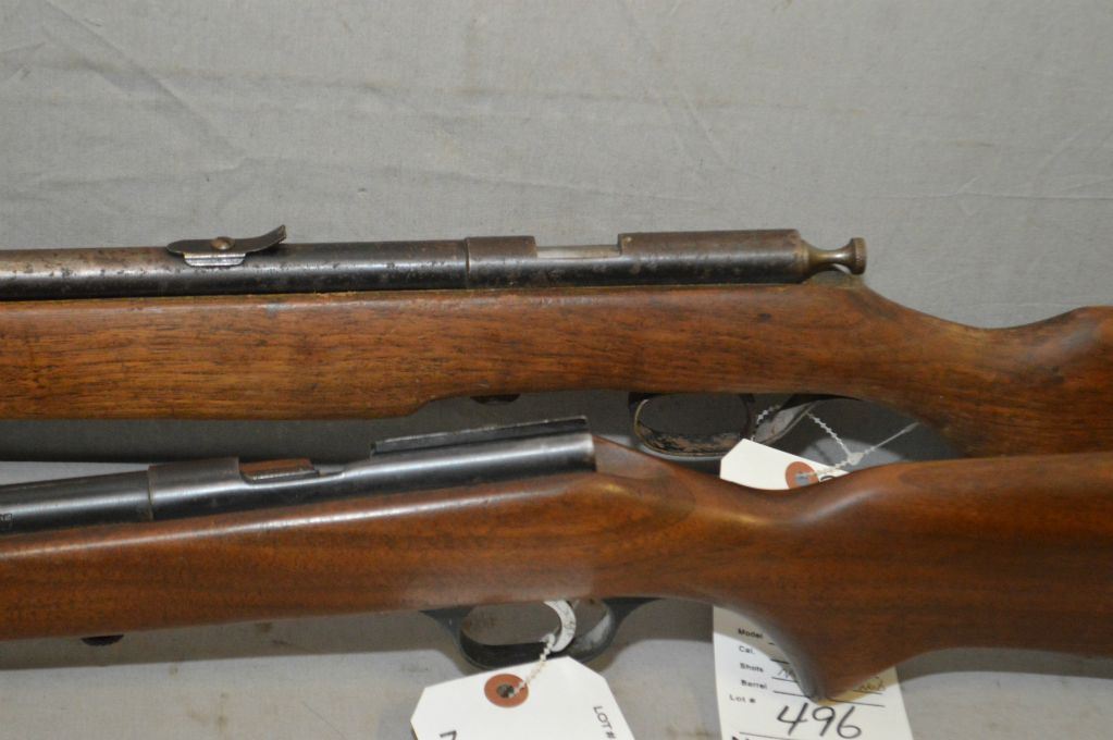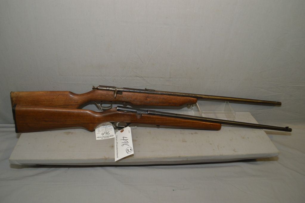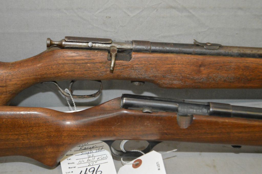 Lot of Two Firearms : Ranger Model Single Shot .22 Cal Single Shot Bolt Action Rifle w/ 27" bbl [ fading rusted blue finish, dry wood w/ sling swivels, missing bolt knob ] Ser # Nil - Savage Model 3C .22 LR Cal Single Shot Bolt Action Rifle w/ 24" bbl [ blued finish, pistol grip stock with small chips on grip, missing the bolt & back sight ] Ser # Nil