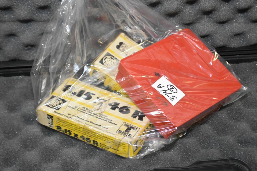 Lot of Two Items: Bag : CH Premium Precision 8.15 x 46 R two die set - approx. 33 Rnds plus 5 brass 8.15 x 46R ammo [ probably reloads ] - foam lined black plastic gun case