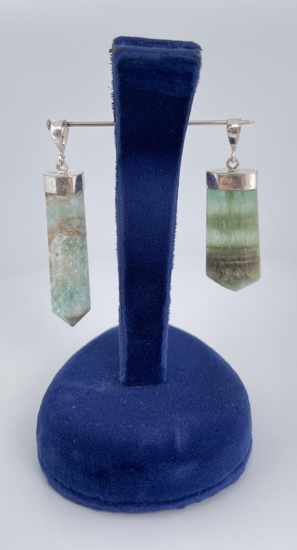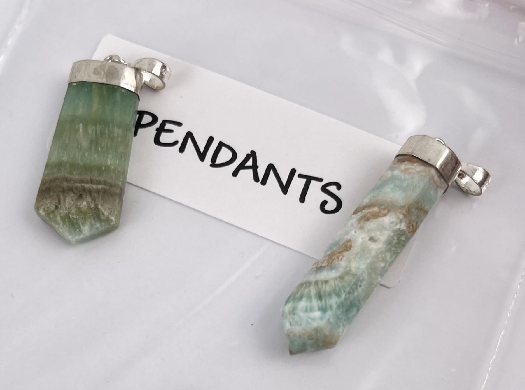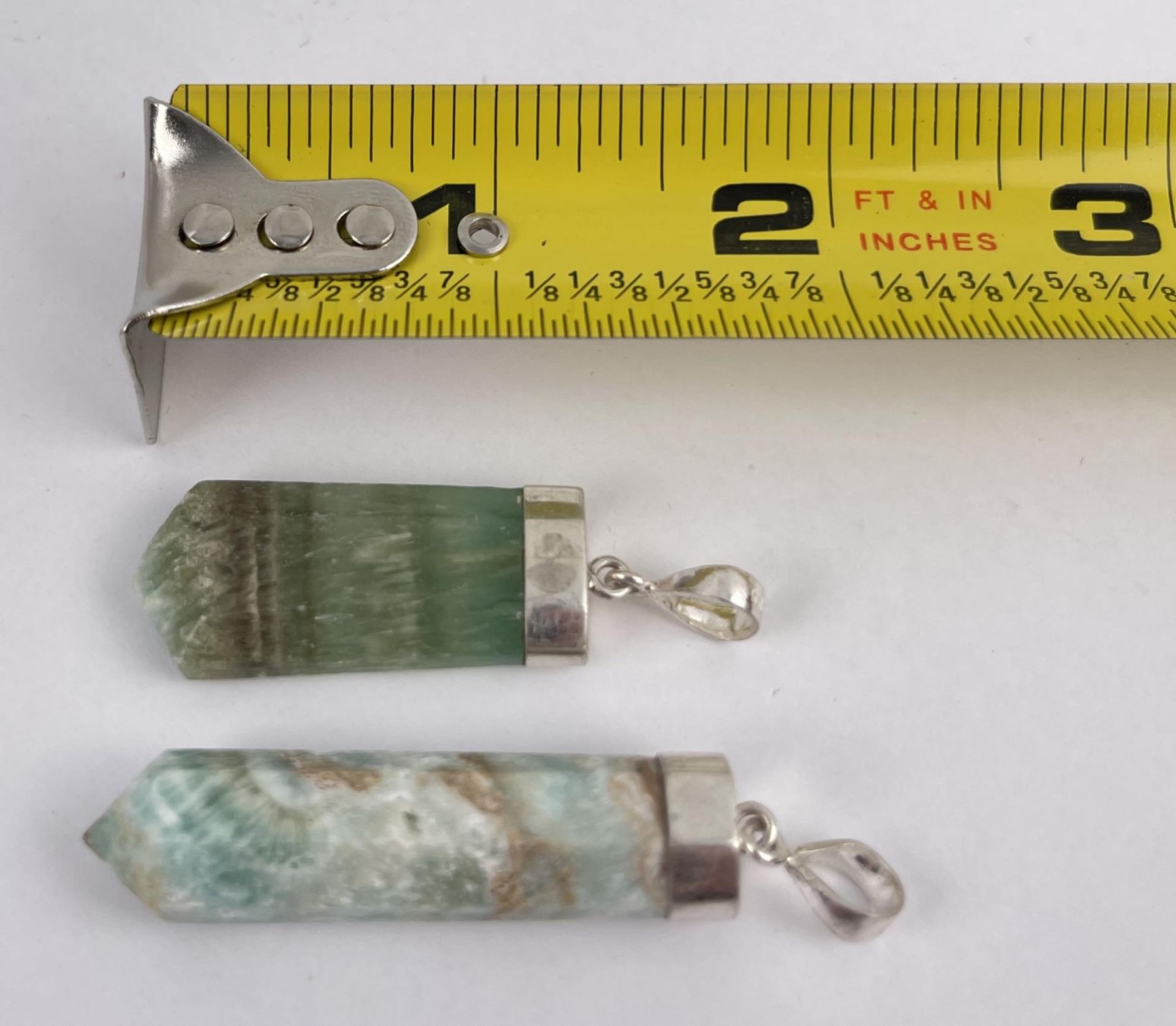 Size varies, measurements as shown. Nice color variation. Pendants set in Sterling Silver.