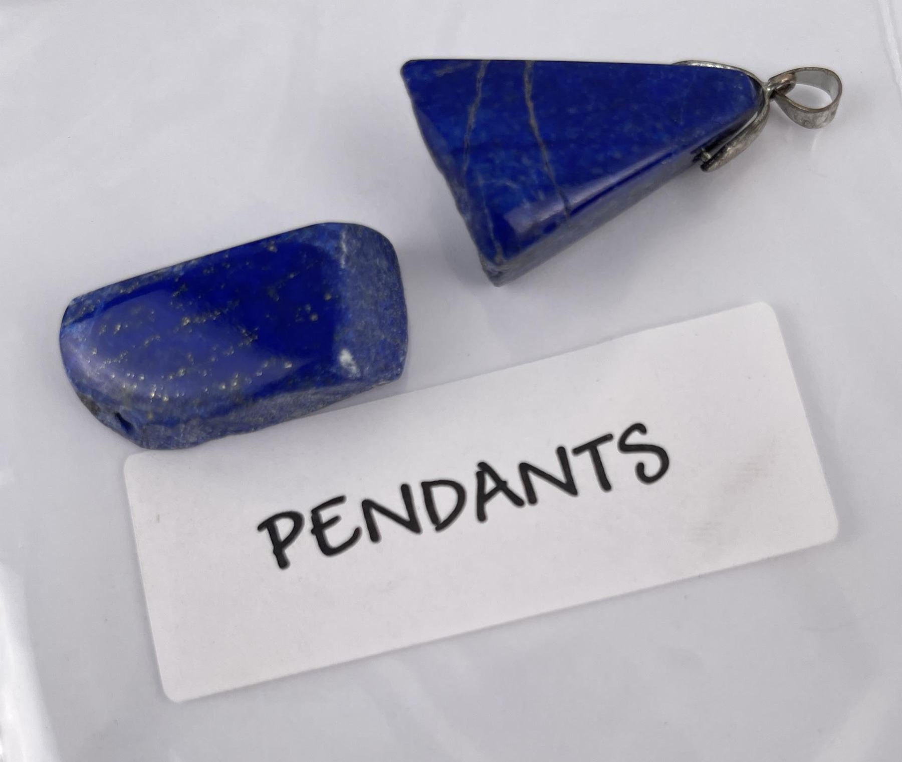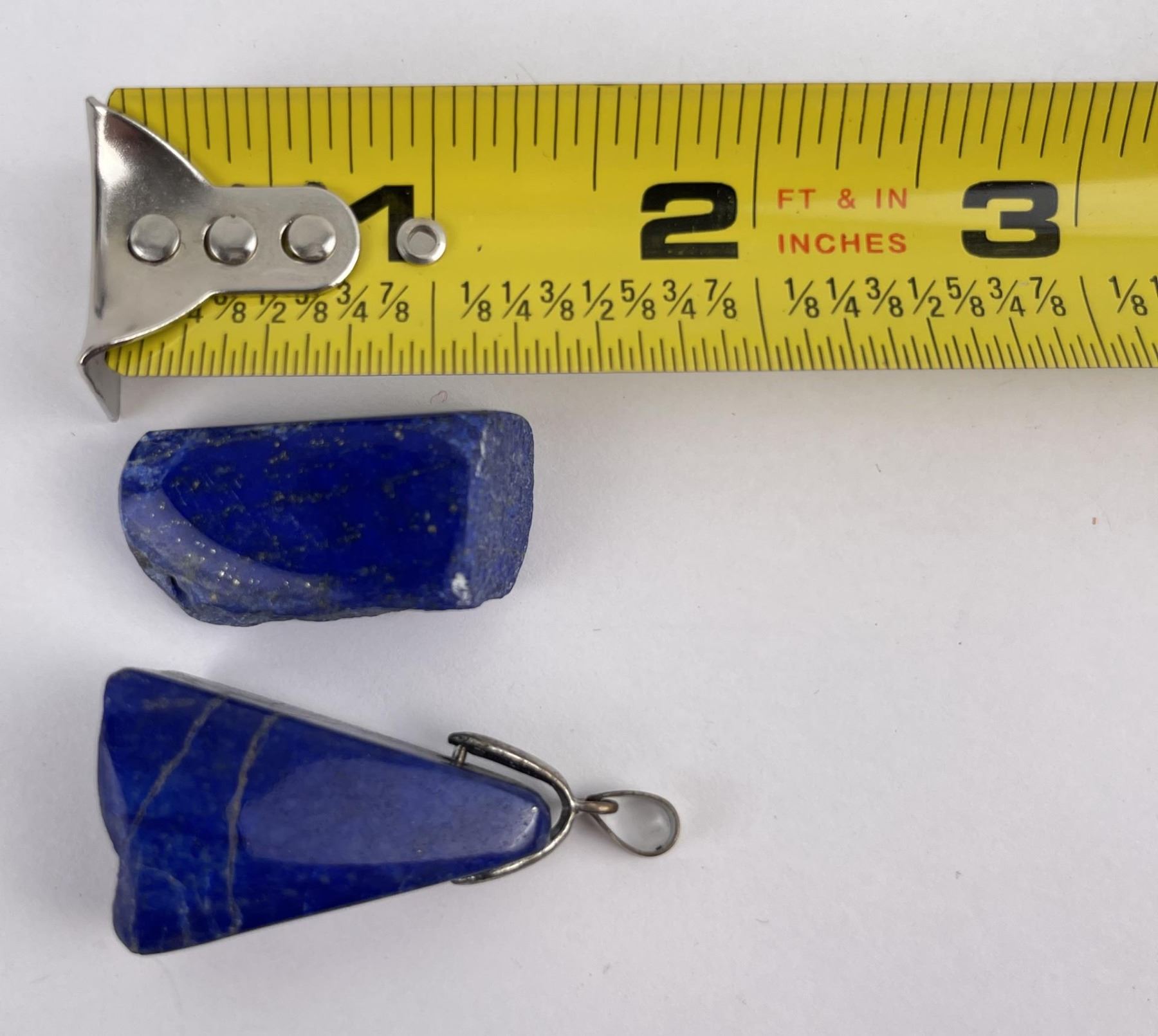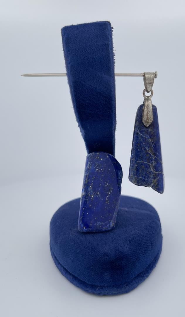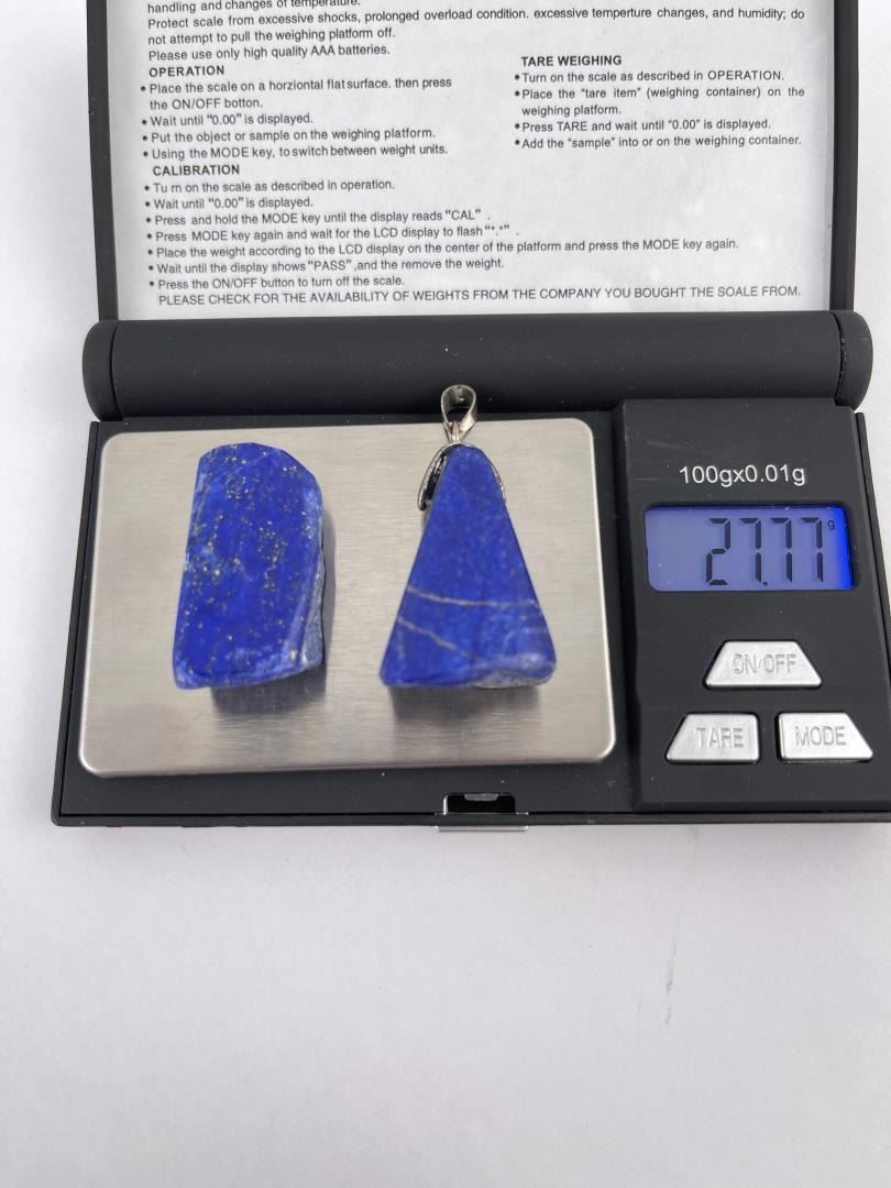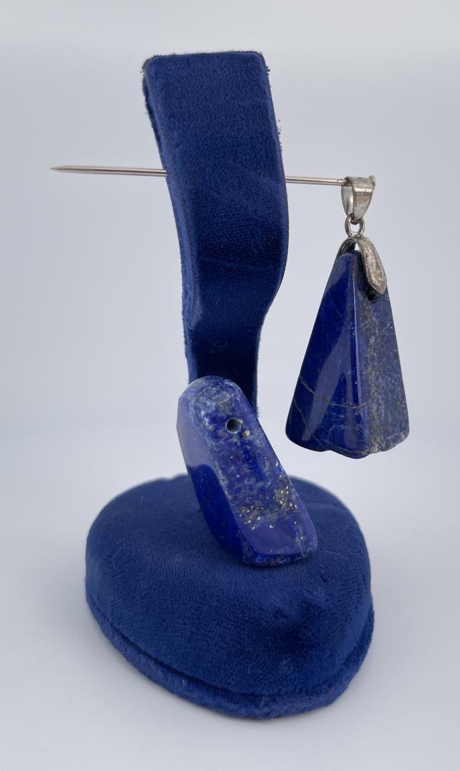 One piece of Lapis has lost the Sterling Silver setting but is drilled. Combined weight and measurements as shown. Stones are polished and in a nice natural shape.