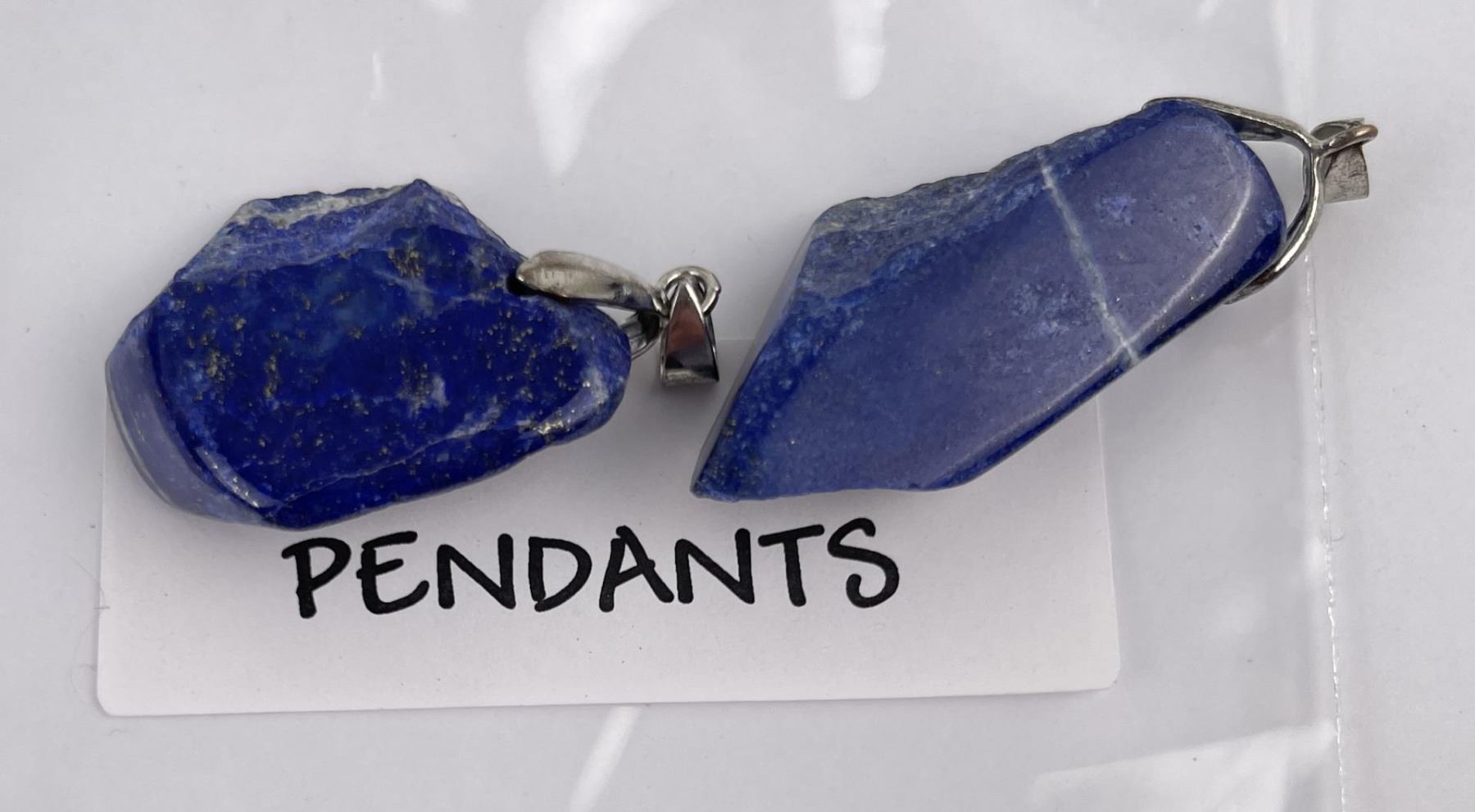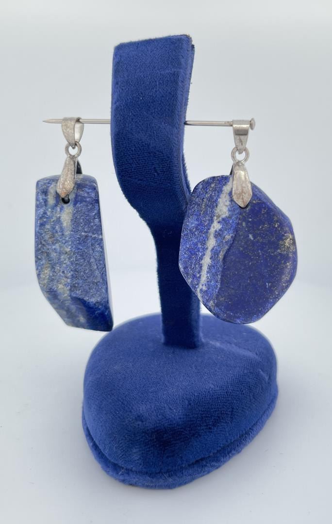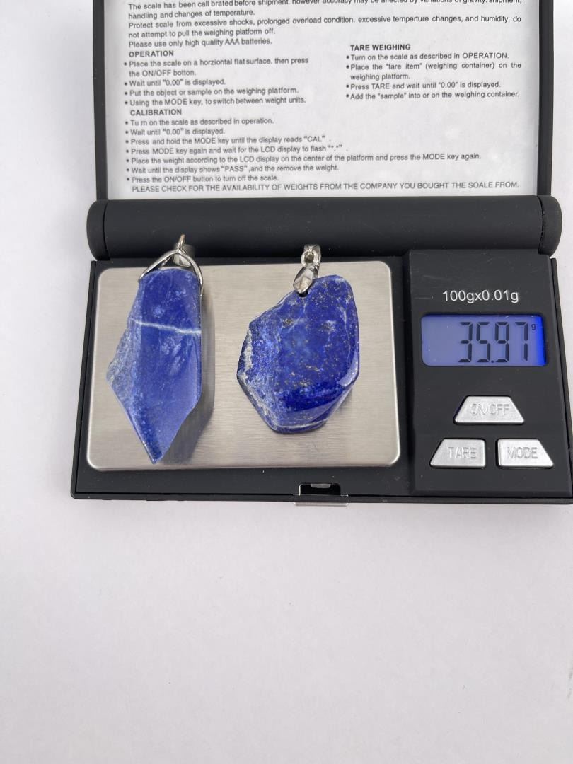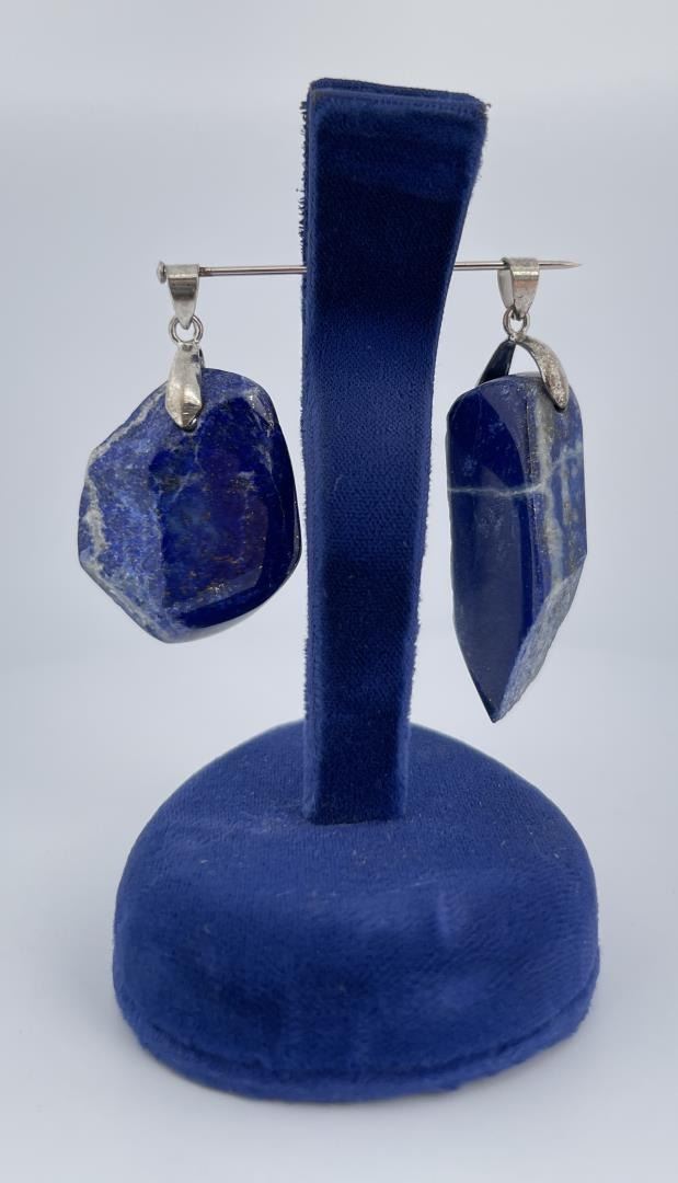 Nicely polished natural stones show lovely color variation. Combined weight and measurements as shown. Pendants set in Sterling Silver.