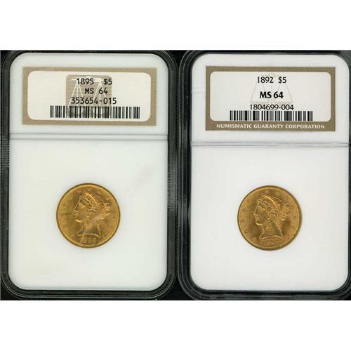 Lot includes:1892 PCGS MS64, 1895 NGC MS64. Lot of 2 coins.