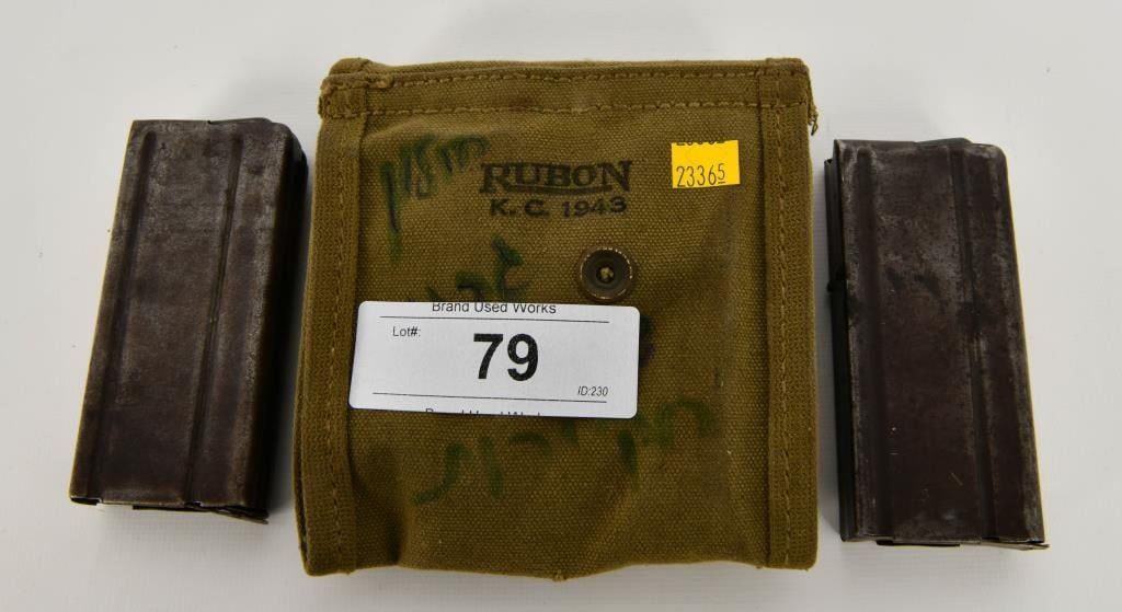 Here We Have a Lot of Two M1 Carbine 15 Round Magazines Marked RUGG and a Two Mag Military Pouch Marked U.S. Rubon K.C. 1943.