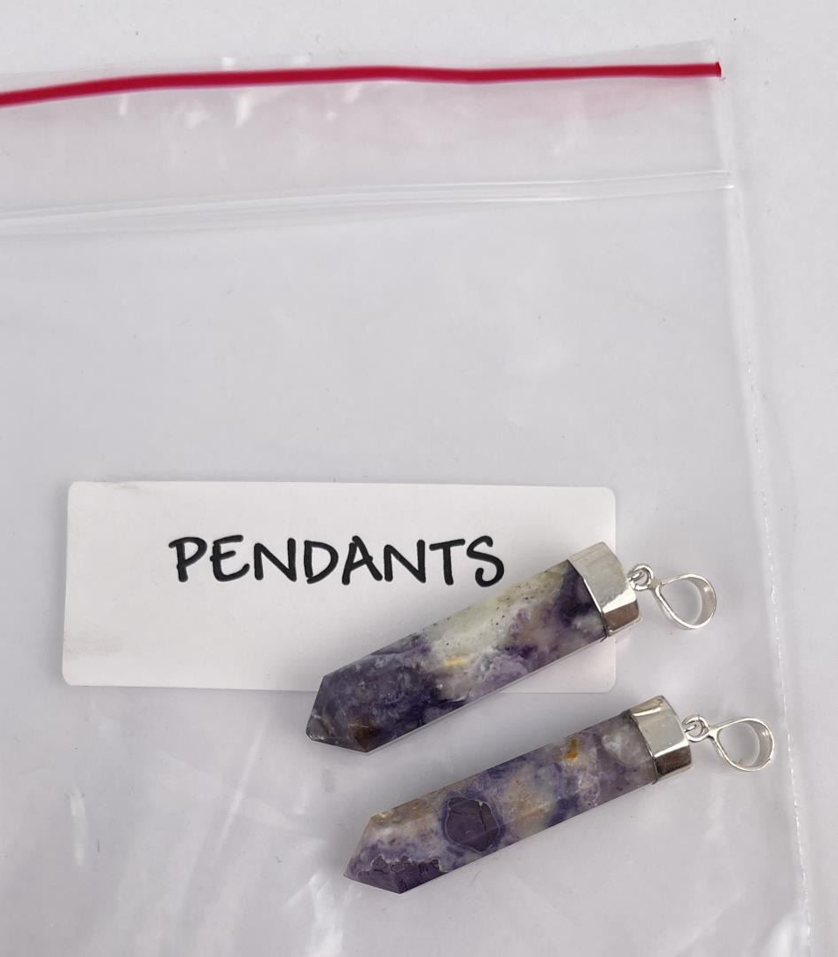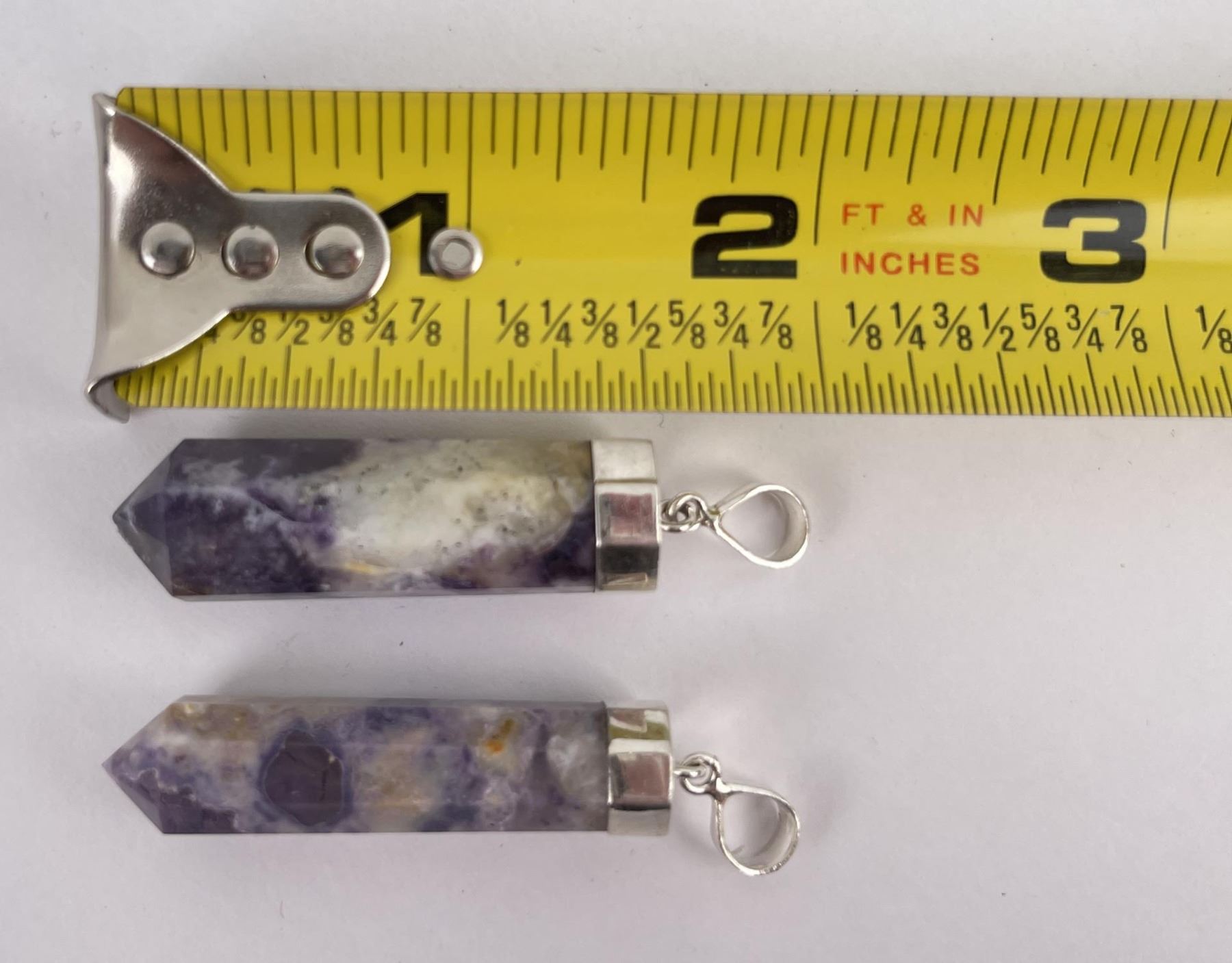 Size varies, measurements as shown. Nice color variation. Pendants set in Sterling Silver.