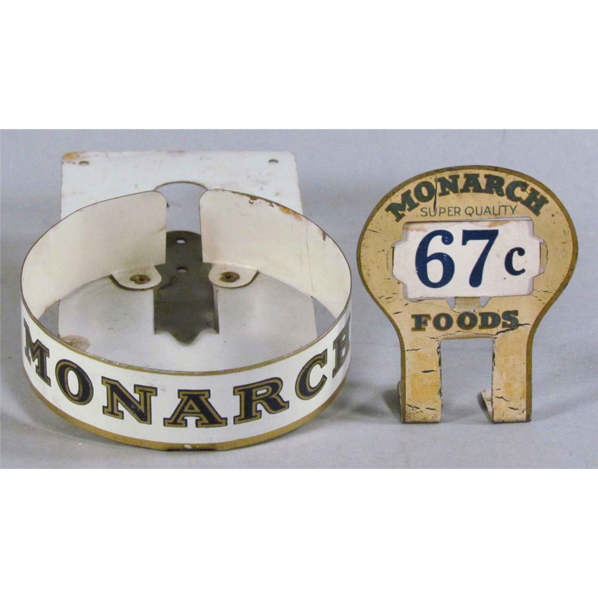 Lot of Two Monarch Tin Litho Shelf Talkers. A few scratches otherwise excellent overall condition. Start Price $20