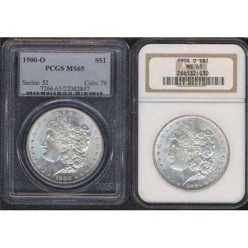 <b>Lot of Two Morgan Dollars.</b> Includes: 1900-O PCGS MS65 and 1904-O NGC MS65. Lot of 2 coins.