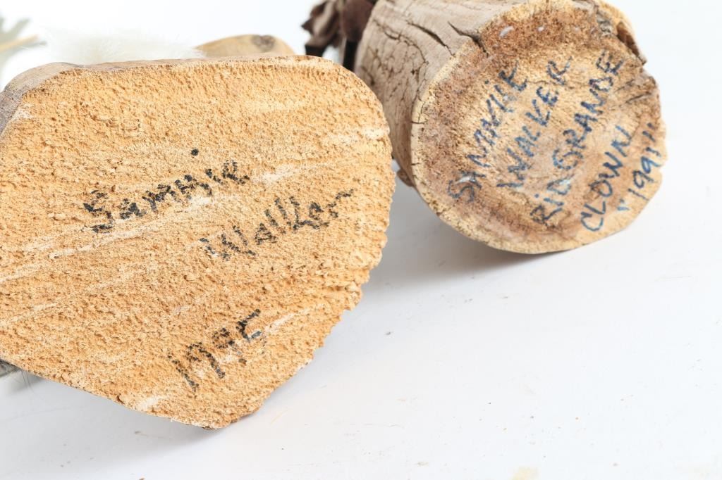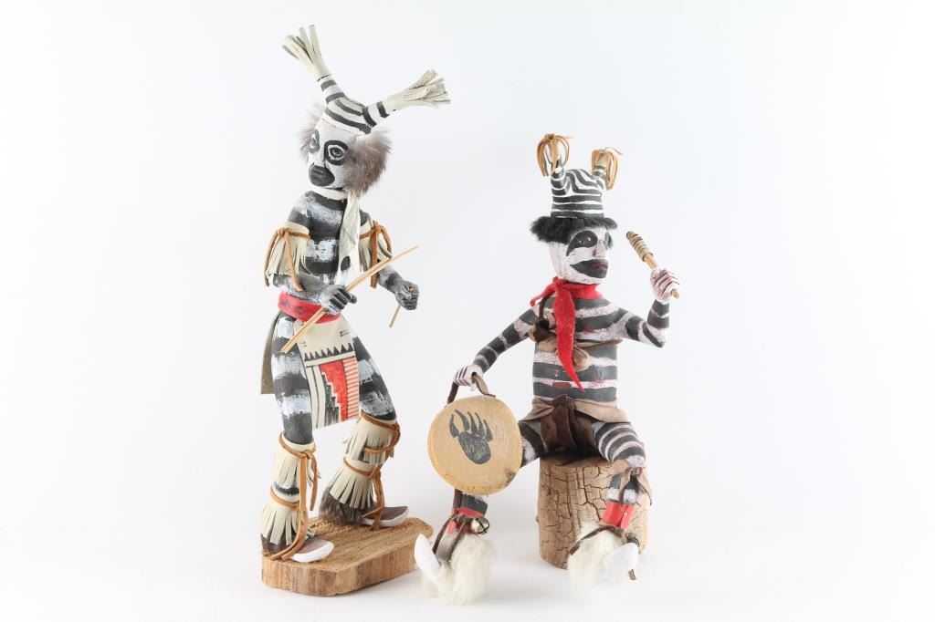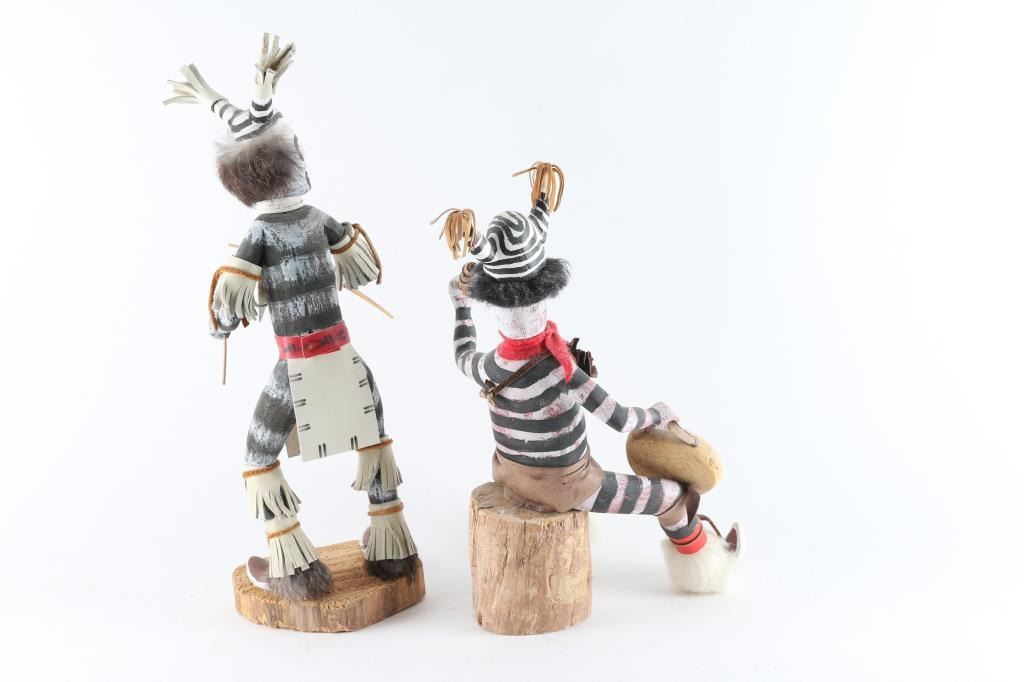 Both are hand-signed by Sammie Walker, master carver of Kachina dolls who grew up in Arizona, the Clown Renegade (14"x4") and the Clown Dancer (18"x4").