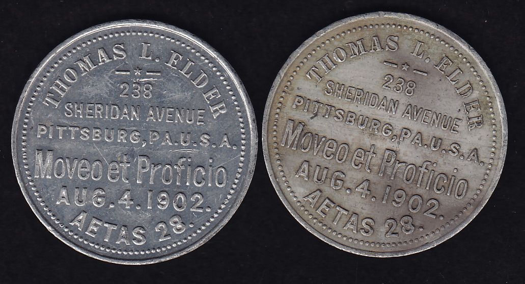 Lot of Two Numismatist's Personal Tokens - Thomas Elder, dated 1902, AL. 2 Pcs.