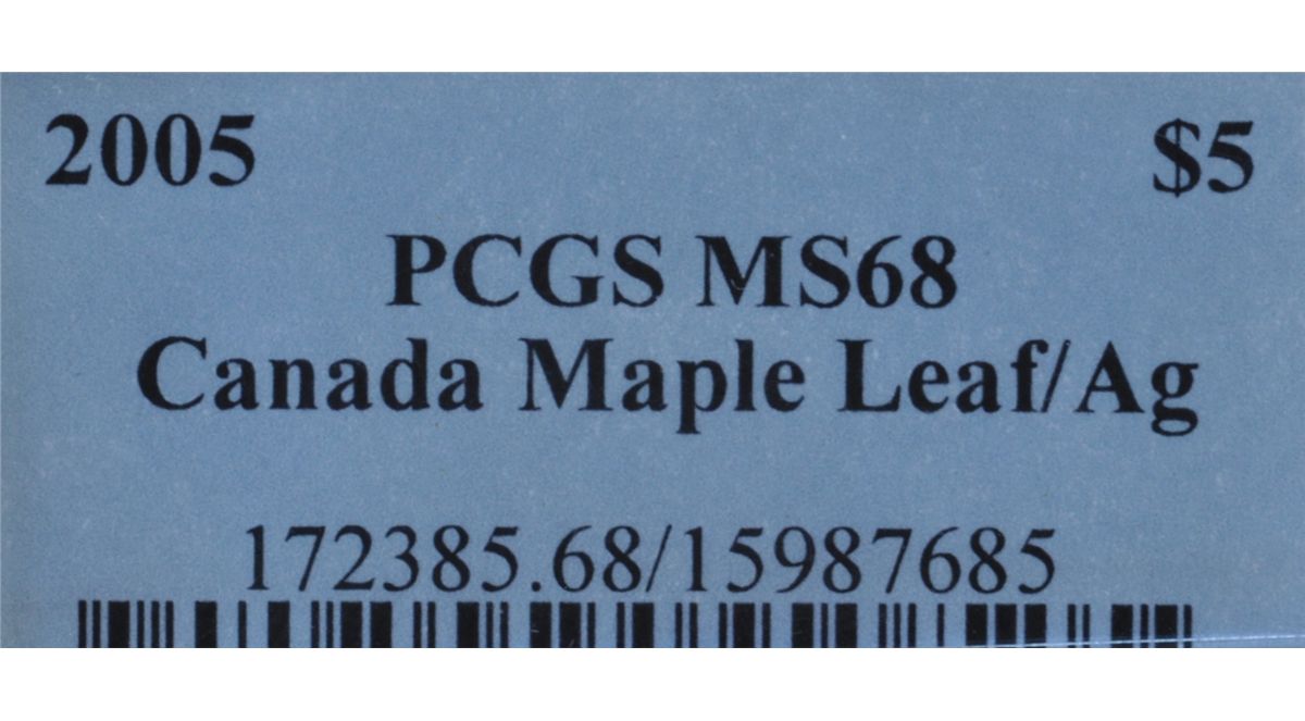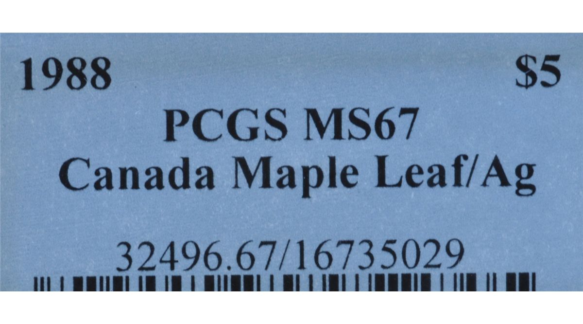 Lot of Two PCGS Graded Silver Maple Leafs - 1988 PCGS MS67 & 2005 PCGS MS68. 2 Pcs.