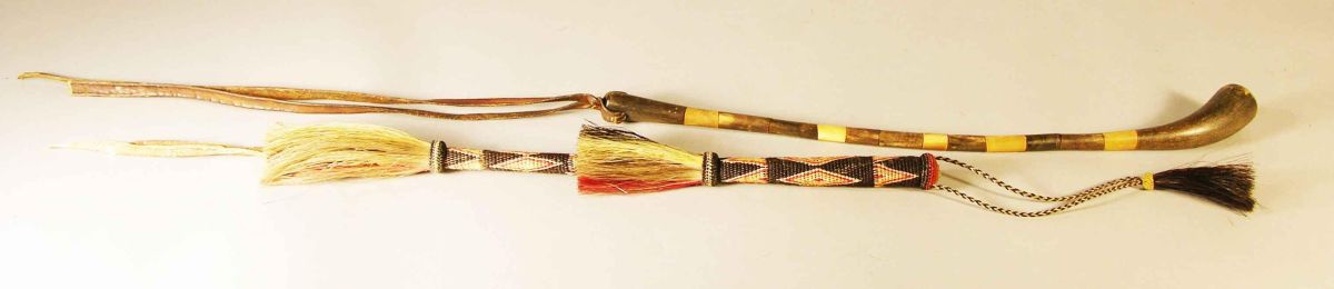 Lot of Two Quirts, one horsehair and one bone. Used to get horses to pick up their pace. Excellent Condition.